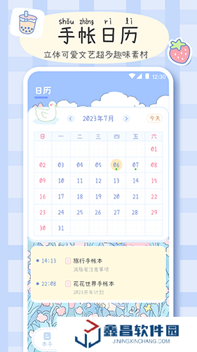 2、豐富的素材選擇:提供貼紙、背景、字體等素材用于裝飾手帳頁面。
