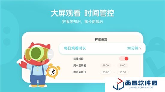 家長可根據(jù)孩子的特點,合理限定每日觀看時長及禁播時段,超時后自動切換音頻收聽模式。