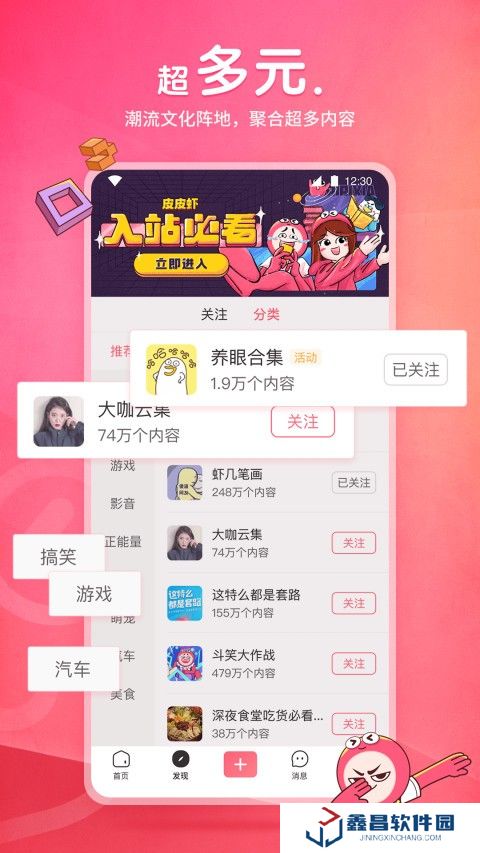 1.簡潔明了:皮皮蝦的界面設(shè)計(jì)簡潔明了,用戶可以快速找到自己感興趣的內(nèi)容。