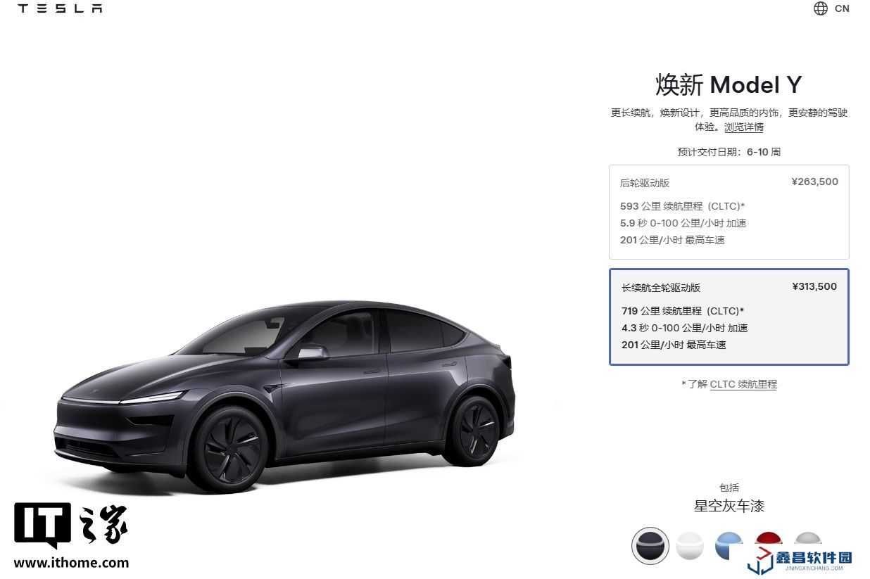 《特斯拉煥新 Model Y 正式發(fā)布:26.35 萬元起,長續(xù)航車型 30.35 萬元》