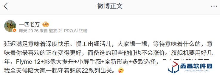 本站 5 月 6 日消息,星紀(jì)魅族集團(tuán)市場品牌部總經(jīng)理萬志強(qiáng)@一匹老萬 昨日發(fā)文透露了星紀(jì)魅族 22 系列手機(jī)部分特性。據(jù)稱,新機(jī)將預(yù)裝 Flyme 12 系統(tǒng)、采用小屏手感 + 全新形態(tài)設(shè)計(jì),號稱“影像大提升”。