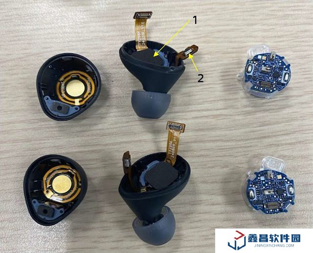 主板取消獨立電池保護芯片,充電盒 PCB 體積較 WF-C700N縮小,每側耳塞充電觸點保留 5V 與接地雙針設計,但芯片標識因照片清晰度不足無法辨認。本站附上相關圖片如下: