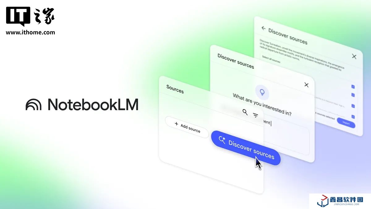 谷歌 AI 筆記應(yīng)用 NotebookLM 新增“發(fā)現(xiàn)資料”功能,可自動(dòng)檢索相關(guān)網(wǎng)絡(luò)資源