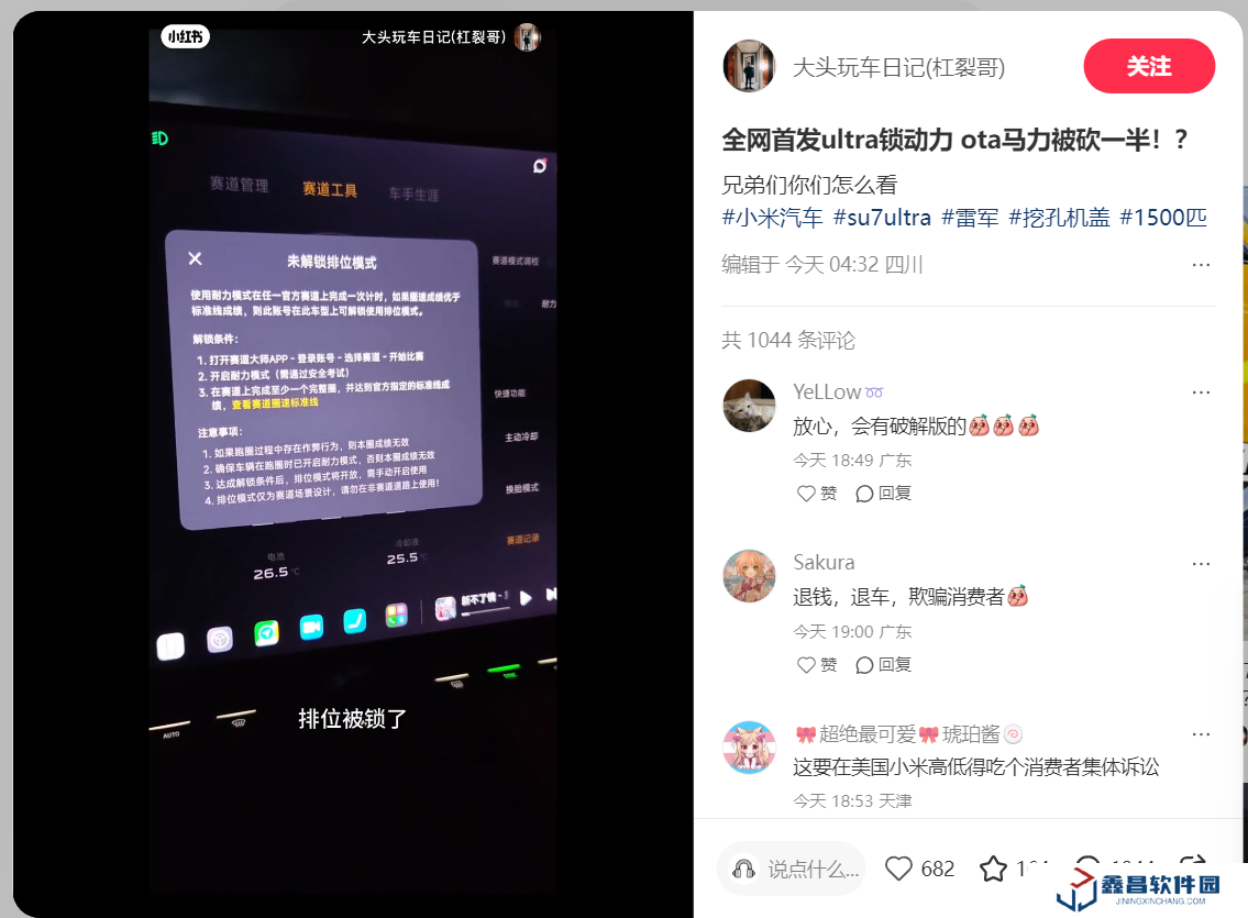 本站 5 月 1 日消息,博主@大頭玩車日記 (杠裂哥) 今日凌晨發(fā)布視頻稱,小米 SU7 Ultra 汽車更新 1.7.0 車機版本,1548 匹最大馬力被限制,需要達成賽道成績才能解鎖,否則只能用大約 900 匹馬力。