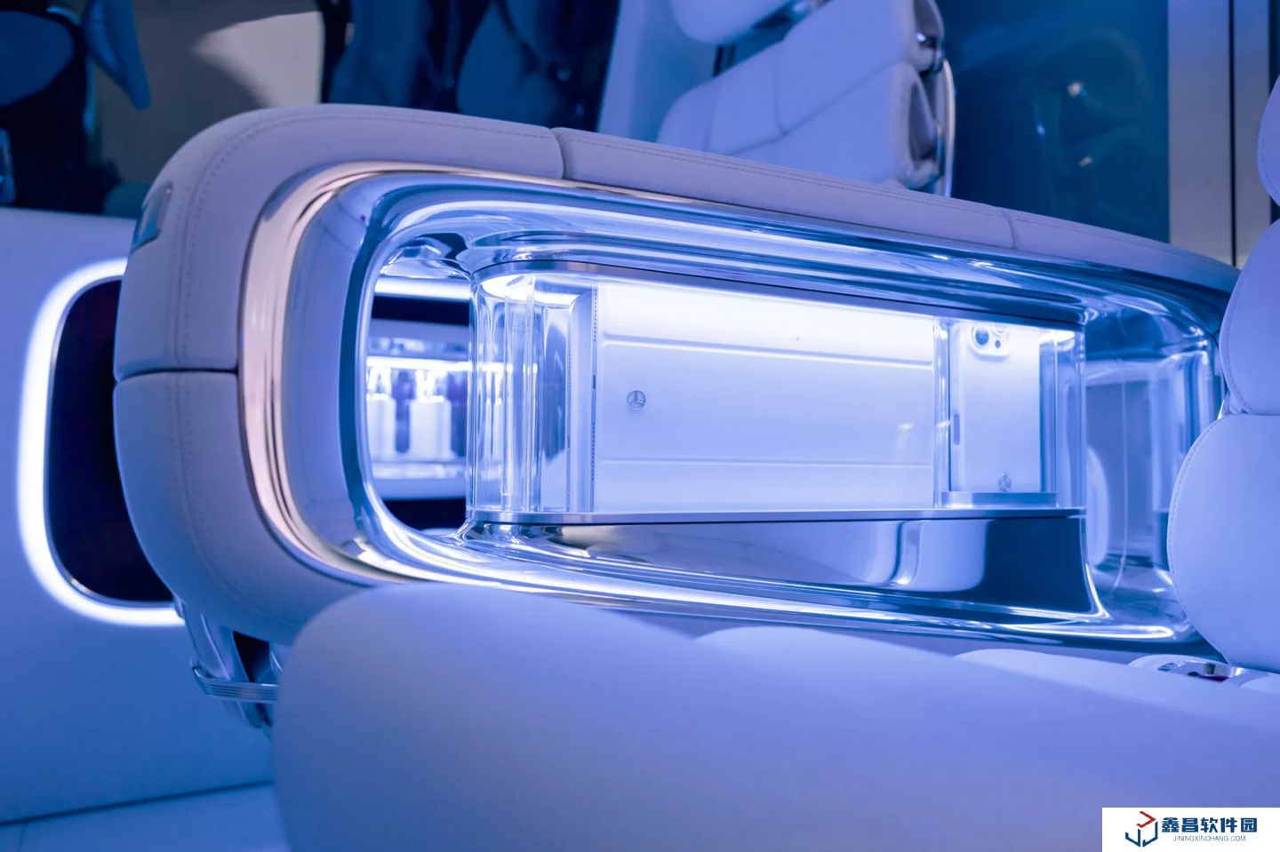乘客靠近時,格柵會上演燈光秀,并點(diǎn)亮引擎蓋上的梅賽德斯星標(biāo)。后方則由超過 450 個三維發(fā)光百葉窗組成的 LED 光帶環(huán)繞,既是尾燈也是剎車燈,極具辨識度。