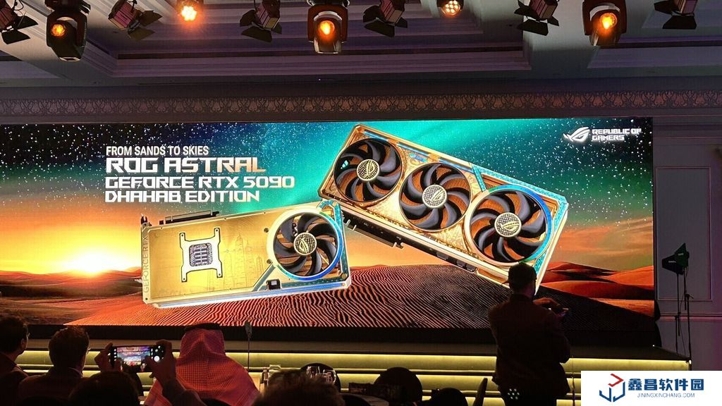 該顯卡基于 NVIDIA RTX 5090 芯片,搭載 ASUS ROG Astral 系列散熱與超頻技術(shù),外殼鑲嵌金屬鍍層,表面刻有迪拜摩天大樓、阿拉伯駱駝與書法圖案,詮釋中東文化元素。