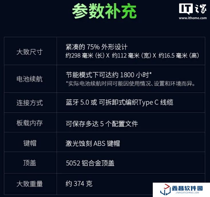 雷蛇喬羅金蛛無線鍵盤現(xiàn)已上架京東,定價 999 元,本站附參數(shù)表如下: