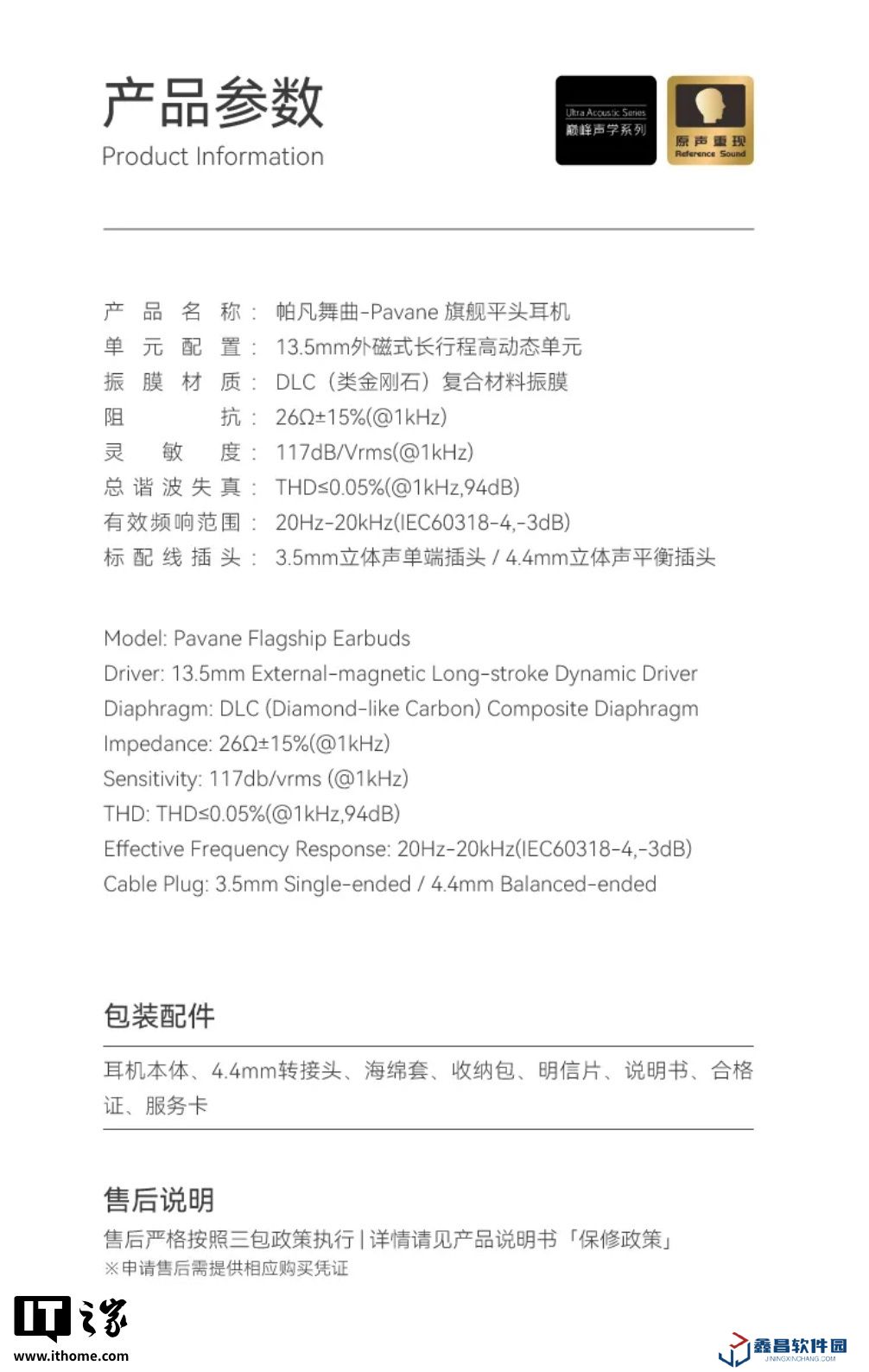 本站 3 月 25 日消息,水月雨預(yù)熱旗下“帕凡舞曲 Pavane”旗艦平頭耳機(jī)將于明天上午10點首銷,定價為1999元。