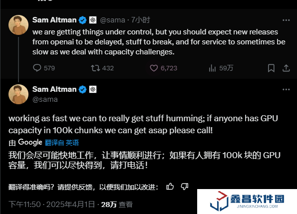 本站 4 月 2 日消息,OpenAI 首席執(zhí)行官山姆?奧爾特曼(Sam Altman)在社交媒體平臺 X 上發(fā)布了一系列帖子,透露該公司新推出的 ChatGPT 圖像生成工具的高人氣引發(fā)了產品延遲等一系列問題。