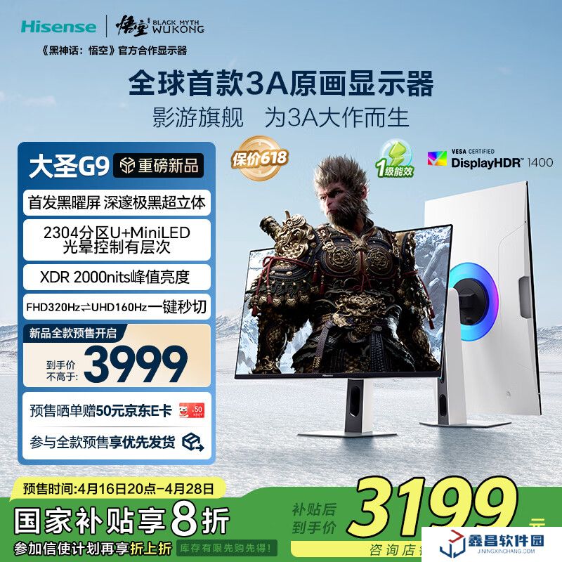 全球首款 3A 原畫顯示器:3999 元海信大圣 G9 上市,27 英寸 4K160Hz 雙模 + 2304 分區(qū)