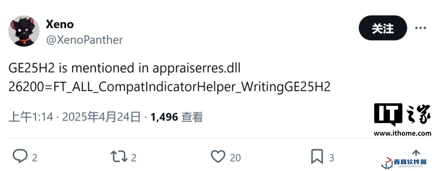 消息源 Xeno 在社交平臺(tái) X 上披露,在 Windows 11 Build 27842 預(yù)覽版中,分析 appraiserRes.dll 文件(通常在下載 Windows 更新或解壓 .ISO 文件時(shí)生成),發(fā)現(xiàn)了“Windows 11 25H2”的引用,構(gòu)建版本號(hào)為 Build 26200。
