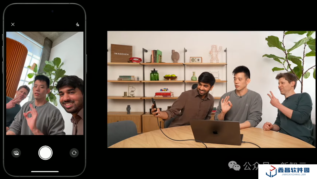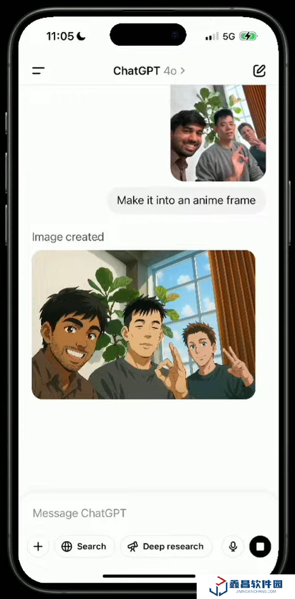 接下來(lái),三個(gè)人用手機(jī)來(lái)了張自拍,GPT-4o 立刻把三人自拍轉(zhuǎn)換成了動(dòng)漫風(fēng)格的版本。