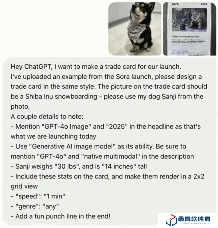 然后,他們給了模型一張卡片,希望生成同樣風(fēng)格的圖像,但要求主角不再是卡片中的巨貓國(guó)王,而是某位研究者的狗狗。