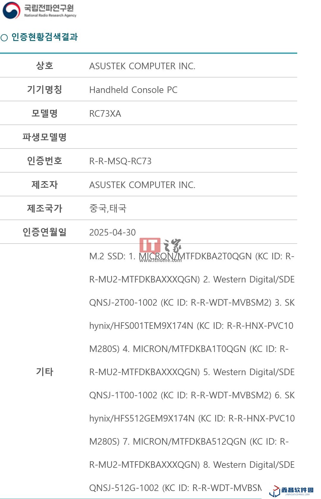 本站 5 月 7 日消息,本站注意到華碩一款型號為 "RC73XA" 的設(shè)備于 4 月 30 日通過了韓國 RRA 無線電認證。
