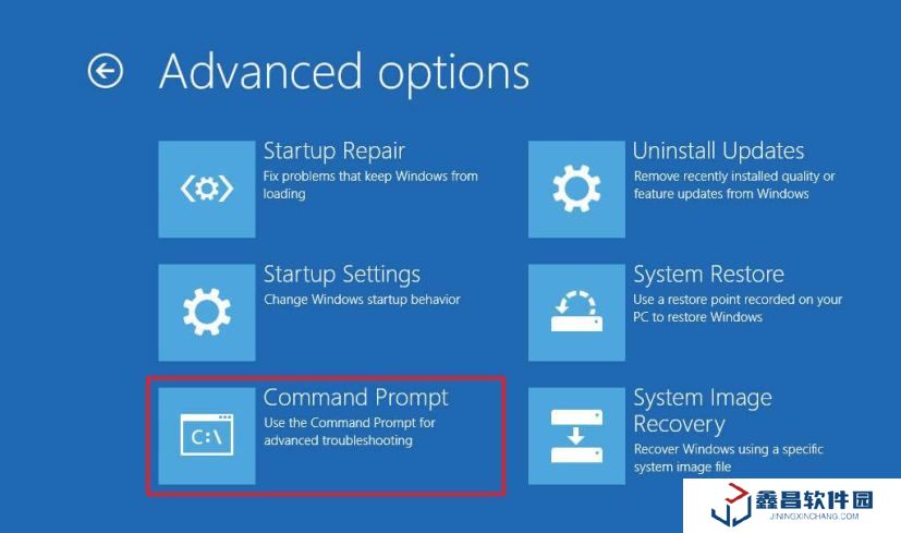 7. 單擊命令提示符選項