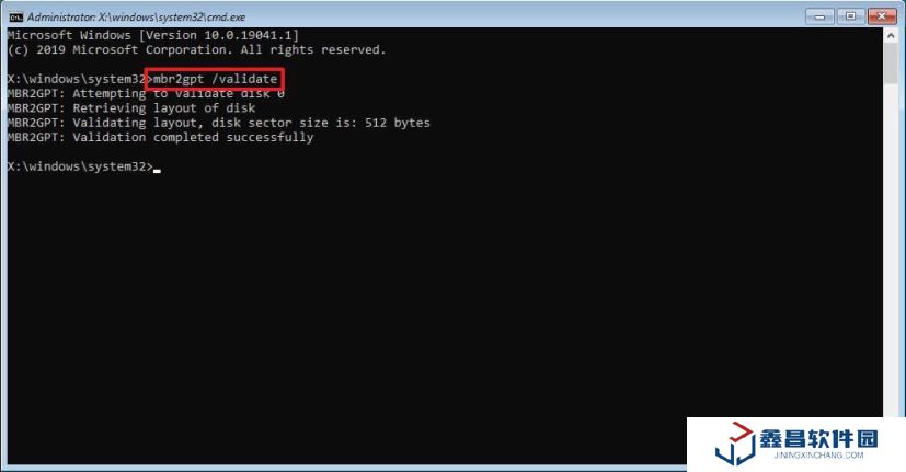 9. 輸入“mbr2gpt /validate”,并按回車鍵,該命令主要驗證磁盤。
