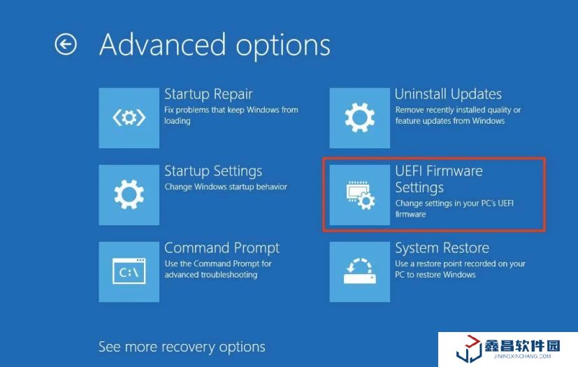 7. 單擊“UEFI 固件設置”選項