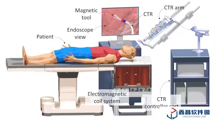 在手術(shù)過(guò)程中,患者頭部將置于嵌入線(xiàn)圈的手術(shù)臺(tái)上,微型工具通過(guò)一個(gè)小切口插入腦部。通過(guò)調(diào)節(jié)線(xiàn)圈中的電流,醫(yī)生可以精準(zhǔn)地操控磁場(chǎng),使工具實(shí)現(xiàn)抓取、拉動(dòng)或切割組織的動(dòng)作。