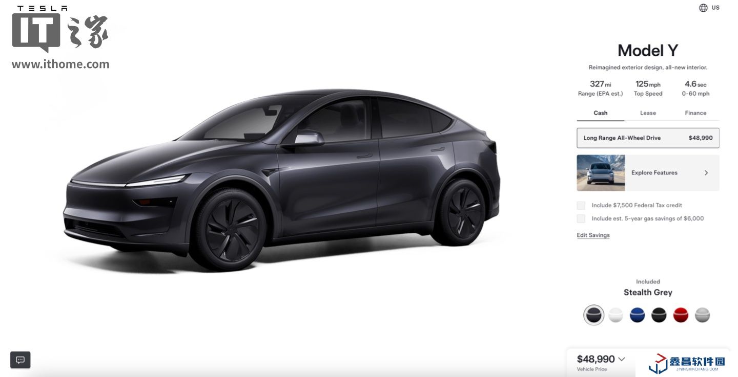 特斯拉在美國市場推出煥新款 Model Y 長續(xù)航全輪驅(qū)動(dòng)版本,定價(jià) 48990 美元