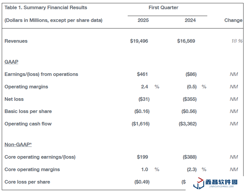 - 波音 2025 年一季度營收 194.96 億美元同比增長 18%,凈虧損 3100 萬美元