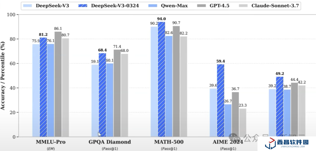 看看這些真實數(shù)字,假設(shè)沒有任何答案進入 Llama 4 的訓(xùn)練數(shù)據(jù),這個模型在 GPQA Diamond 上的性能(谷歌驗證的極其嚴(yán)格的 STEM 基準(zhǔn)測試)實際上是比 DeepSeek V3 更好的。