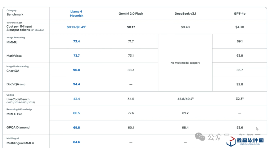 在下面這個表格中,Meta 將 Llama 4 和 Gemini2.0 Pro、GPT-4.5 等模型進行了比較,數(shù)字非常漂亮。