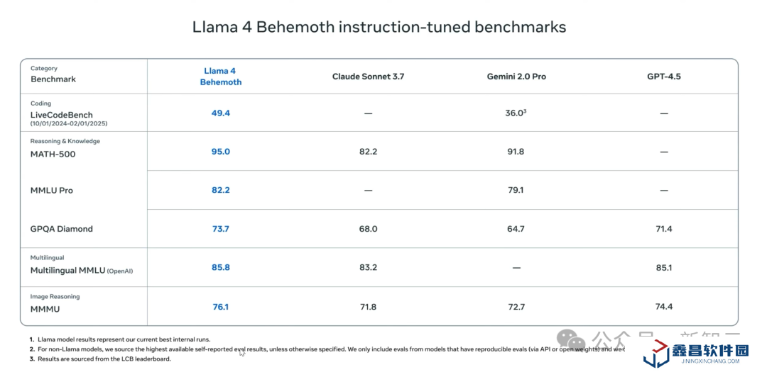 但仔細看腳注,卻說的是 Llama 模型的結(jié)果代表了目前最好的內(nèi)部運行情況,所以很大可能是,Meta 把 Llama 4 跑了 5 遍或 10 遍,取了其中的最好結(jié)果。