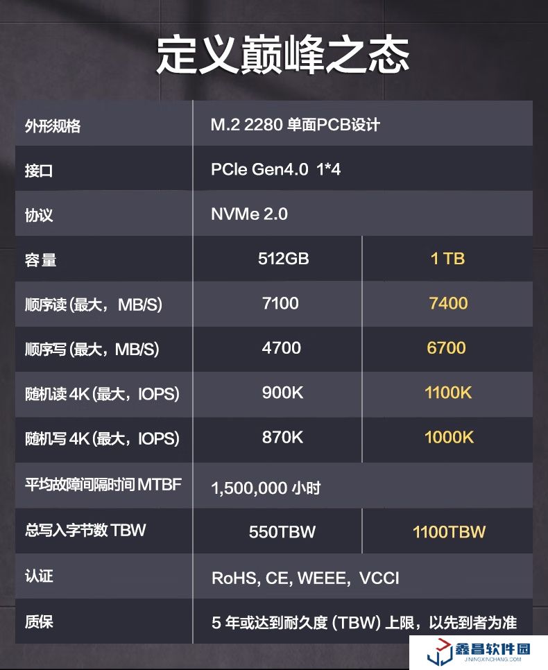 其順序讀取速度為 7400MB/s,順序?qū)懭胨俣?6700MB/s,隨機(jī)讀取速度為 1100K,隨機(jī)寫入速度 1000K,平均故障間隔時(shí)間為 150 萬小時(shí),提供五年質(zhì)保或 1100TBW 質(zhì)保。