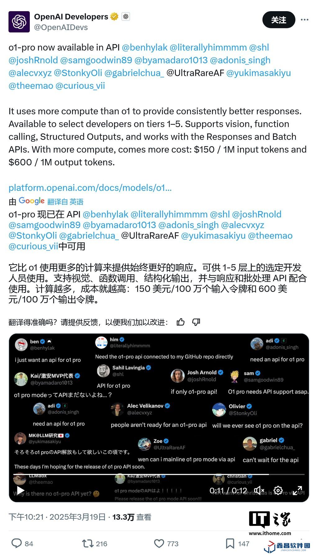 本站 3 月 20 日消息,OpenAI 昨日(3 月 19 日)在 X 平臺發(fā)布推文,宣布通過開發(fā)者 API,正式推出 o1 系列升級版“o1-pro”,宣稱其通過更高計算資源投入實現(xiàn)“更一致且優(yōu)質(zhì)的回應(yīng)”。