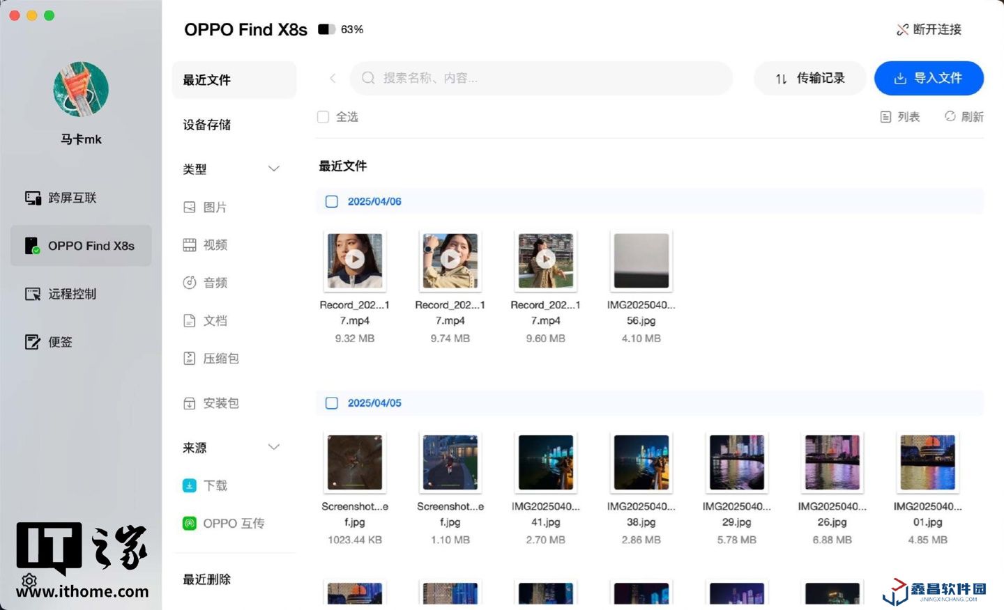 連接后,在 O+ 互聯(lián)客戶端內(nèi)可以看到手機的各種文檔、包括圖片、視頻、下載等,拖拽的方式就可實現(xiàn)“互傳”。