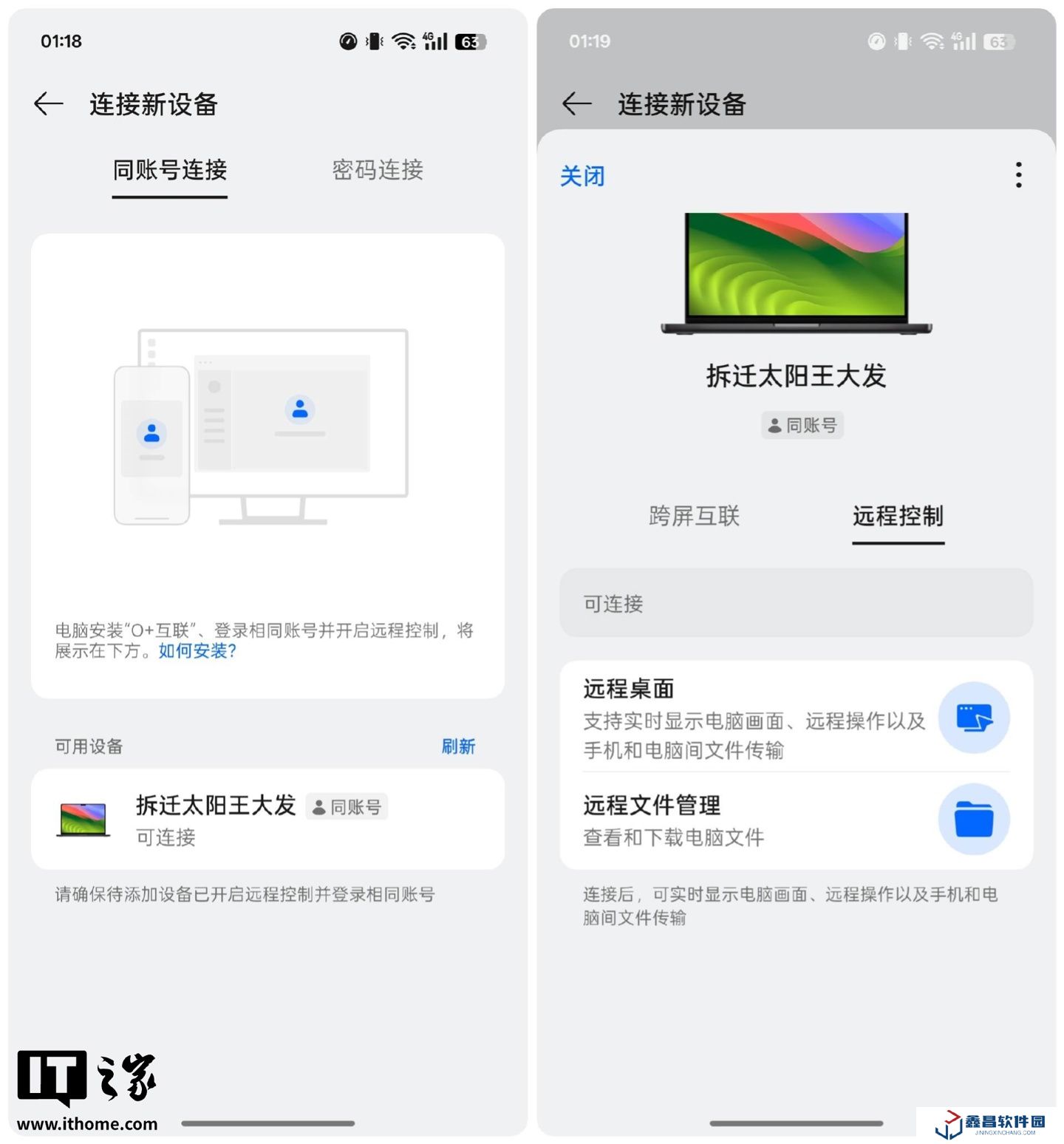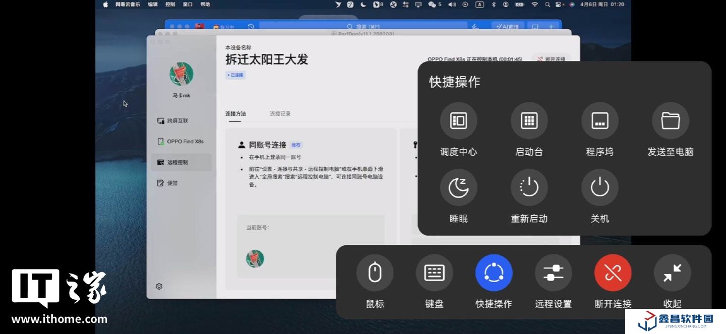 比如不僅支持與 Mac 之間的互聯(lián)互通,還支持“遠(yuǎn)程控制”,Mac 下載 O+ 互聯(lián)客戶端,登錄 OPPO 賬號,即可開啟遠(yuǎn)程控制。