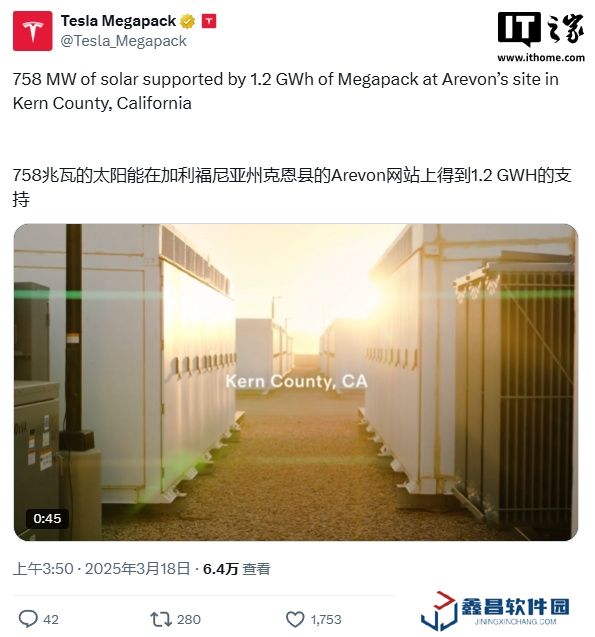 本站 3 月 18 日消息,特斯拉及其合作伙伴 Arevon 今日宣布,位于加州克恩縣的 Eland 光儲一體化項目二期工程正式投運。