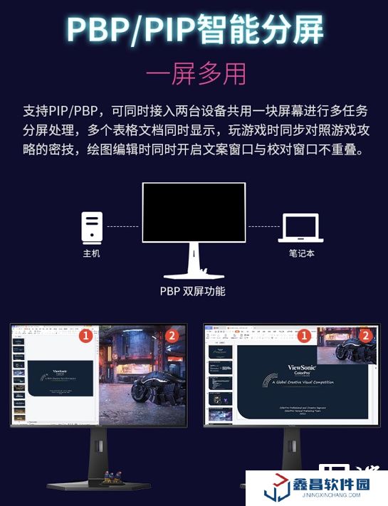 優(yōu)派 XG273B-2K-OLED 支持 PIP / PBP 智能分屏,可同時接入兩臺設(shè)備進行多任務(wù)分屏處理。