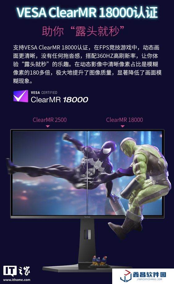 同時,優(yōu)派 XG273B-2K-OLED 支持 VESA ClearMR 18000 認證,在動態(tài)影像中清晰像素占比是模糊像素的 180 多倍,降低了畫面模糊現(xiàn)象;尤其是在 FPS 競技游戲中,讓動態(tài)畫面更清晰。