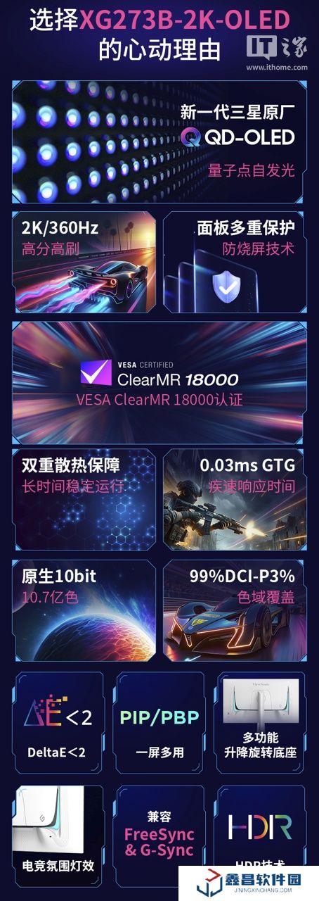本站 5 月 9 日消息,優(yōu)派(ViewSonic)今日宣布推出 2K 360Hz 新一代 QD-OLED 面板技術(shù),以及電競顯示器 XG273B-2K-OLED。
