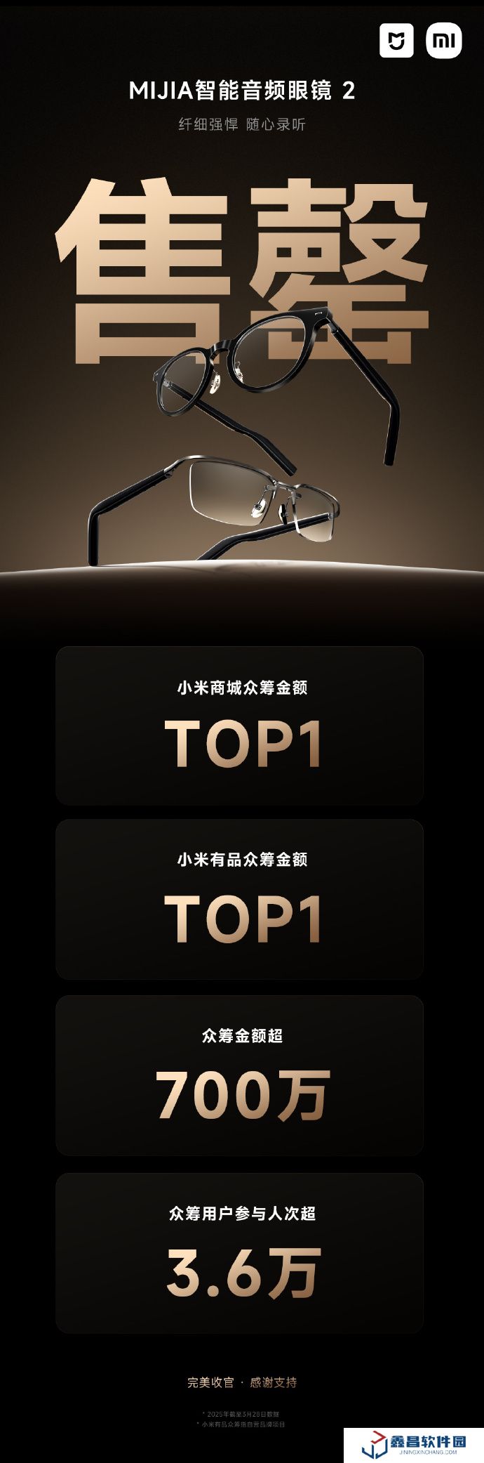 小米 MIJIA 智能音頻眼鏡 2 眾籌售罄,深空鈦 4 月中下旬開售
