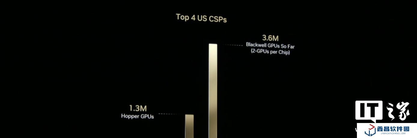 黃仁勛表示,Blackwell 芯片推出一年來,AI 行業(yè)取得了巨大進展,AI 功能越來越強大了。另外,2024 年全球前四超算運營商共采購 130 萬片 Hopper 架構芯片。2025 年,它們又購買了 360 萬 Blackwell 芯片。