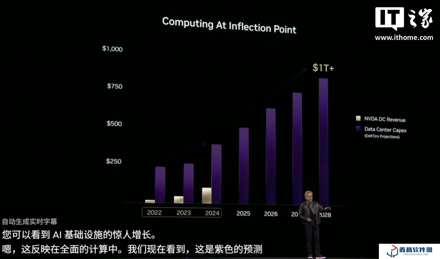 黃仁勛預計,數(shù)據(jù)中心建設將在 2028 年達到 1 萬億美元(本站備注:當前約 7.23 萬億元人民幣)。