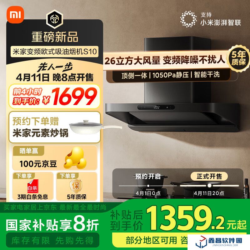 本站 4 月 4 日消息,小米米家智能變頻歐式吸油煙機(jī) S10 現(xiàn)已在京東平臺(tái)上架并開啟預(yù)約,4 月 11 日晚 8 點(diǎn)開售,前 4 小時(shí)到手價(jià) 1699 元,補(bǔ)貼后到手價(jià) 1359.2 元起。