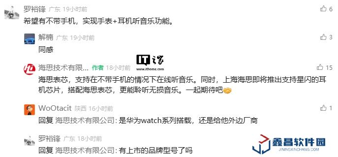 本站注意到,上海海思在該文章的評(píng)論區(qū)中還回復(fù)了關(guān)于星閃耳機(jī)的問(wèn)題:“海思表芯,支持在不帶手機(jī)的情況下在線聽(tīng)音樂(lè)。同時(shí),上海海思即將推出支持星閃的耳機(jī)芯片,搭配海思表芯,更能聆聽(tīng)無(wú)損音樂(lè)。”
