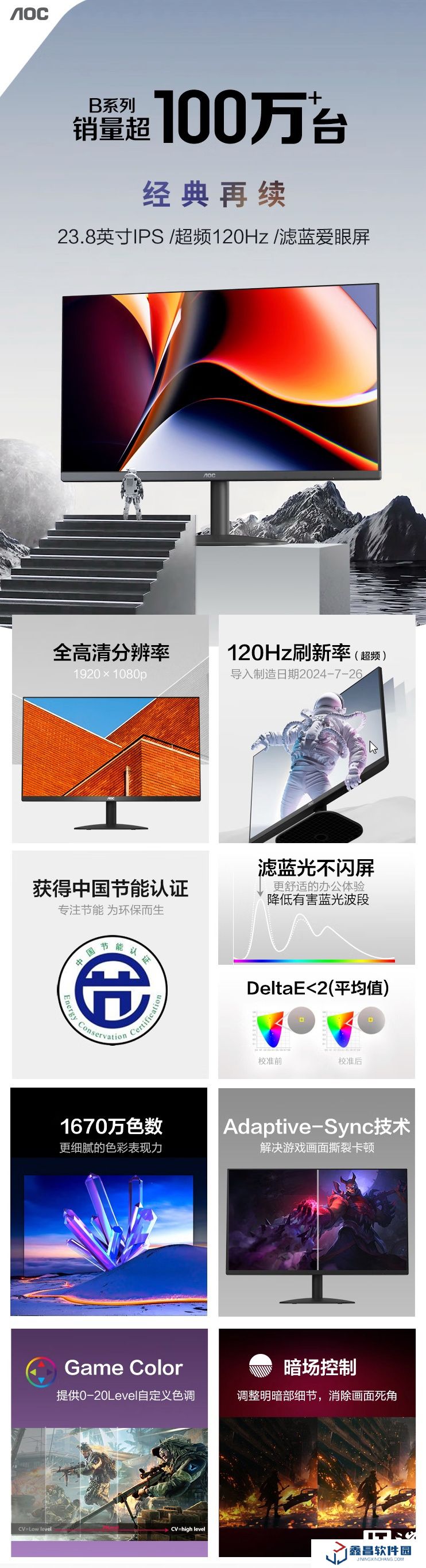AOC 推出新款“24B35H”23.8 英寸顯示器:1080P 120Hz 超頻,國(guó)補(bǔ)后 399 元
