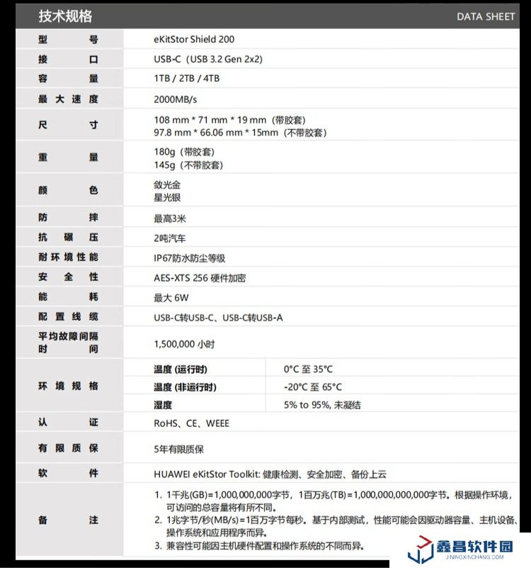 華為推出坤靈 eKitStor Shield 200 系列移動固態(tài)硬盤:2000MB/s,1TB 版本 769 元