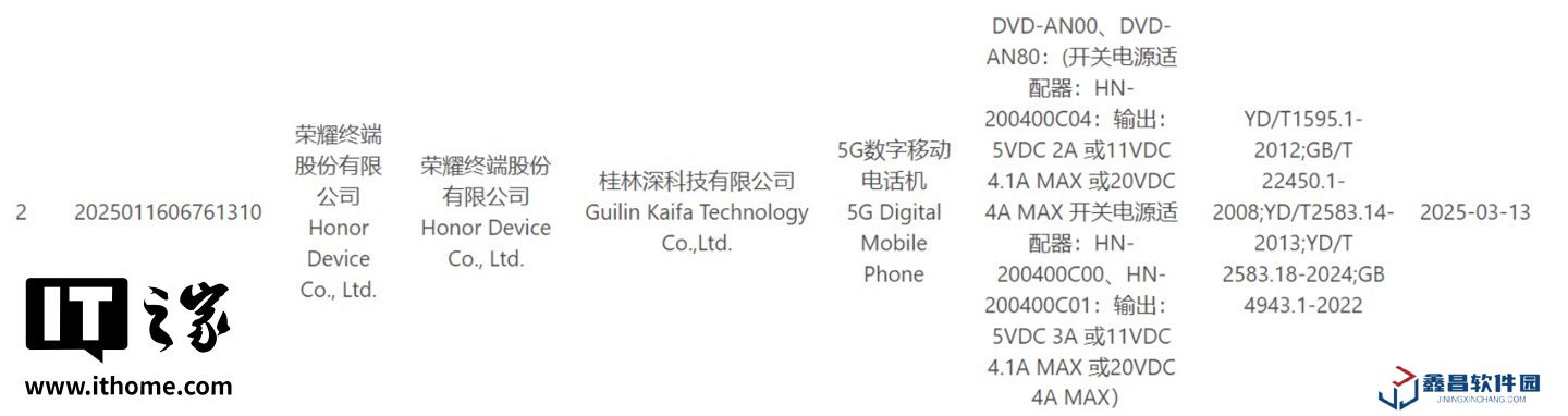 榮耀神秘新機(jī)獲工信部認(rèn)證:支持 80W 有線充電 + 北斗三號(hào)短報(bào)文功能、有望為 X70 Pro 手機(jī)