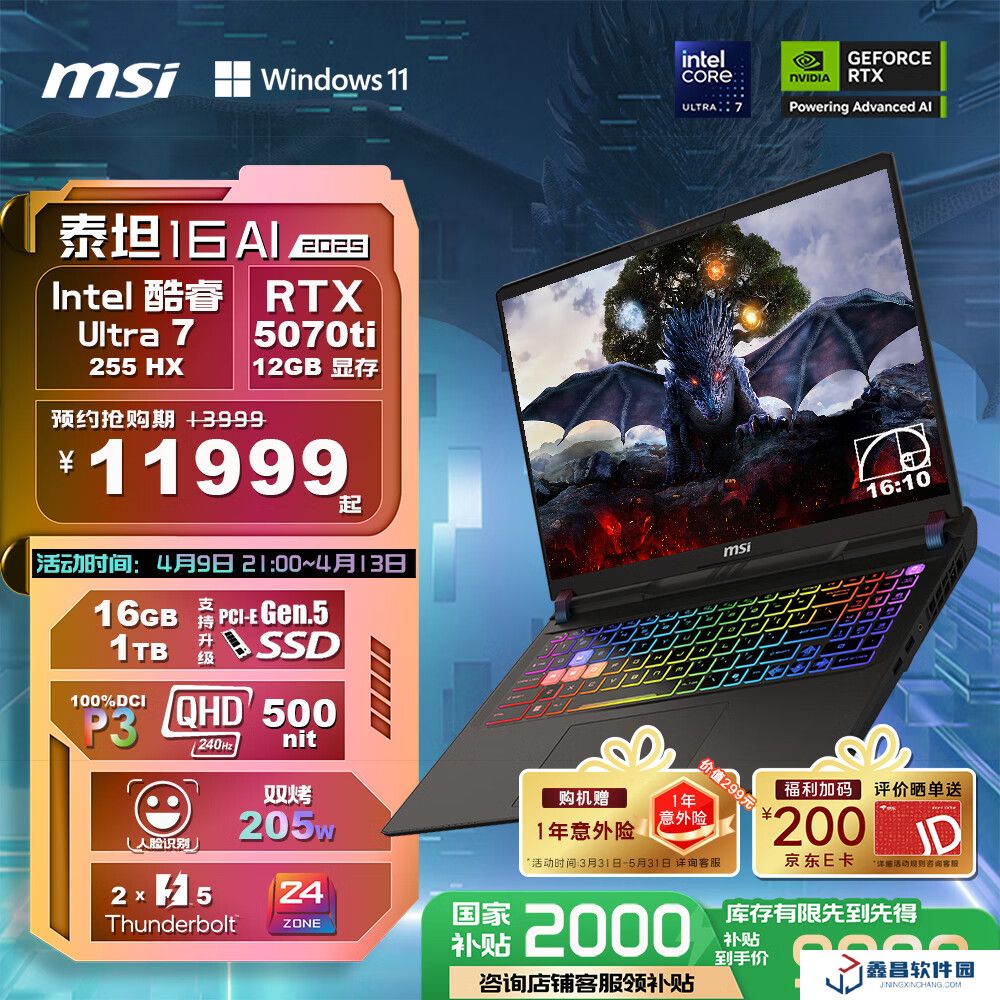 微星推出 RTX 5070 Ti 版泰坦 16 AI 2025 游戲本:國補價 9999 元