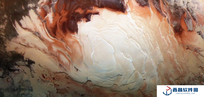 如今,火星上的水主要以冰的形式存在。在火星的兩極,軌道探測(cè)器觀測(cè)到幾公里厚的冰層。通過光譜儀可以確認(rèn)這是水結(jié)成的冰,雷達(dá)也能觀察到其結(jié)構(gòu)。如果把這些冰均勻地鋪滿整個(gè)火星,可形成 20 至 30 米厚的冰層。此外,中緯度地區(qū)也發(fā)現(xiàn)少量冰。
